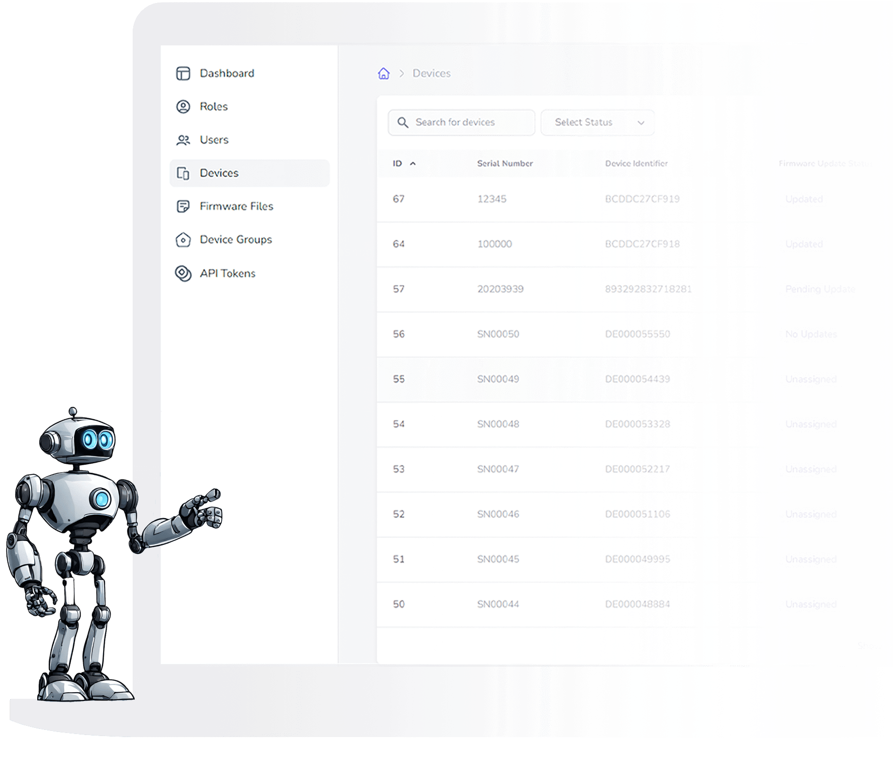 Effortlessly update your IoT device firmware remotely. Our platform ensures quick, secure, and seamless delivery of updates to your devices wherever they are located.